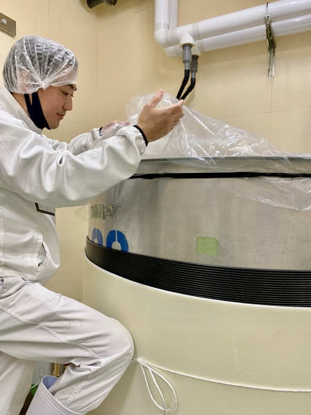 もろみの香りを確認する神田清隆さん Photo by Y.Y.